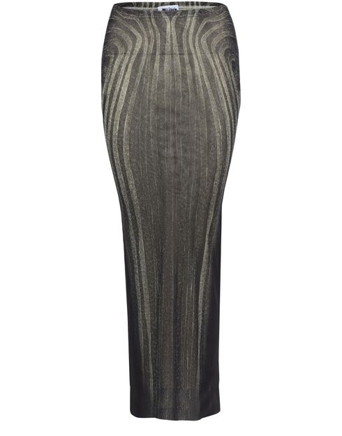 Spiral printed mesh long skirt