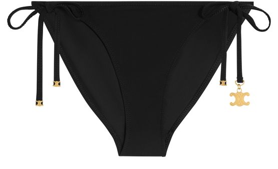 Discover the Triomphe bikini bottom in matte jersey, swimsuit bottom with a classic fit and low waist, enhanced by side tie fastenings adorned with Triomphe aglets. This elegant and modern model harmonises perfectly with timeless sophistication, ideal for your swimwear collection.