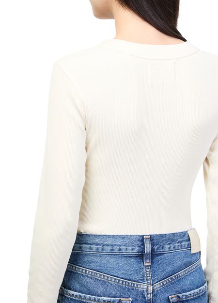 Reveal Citizens of Humanity's Varra Henley long-sleeved top, crafted in ribbed fabric for a refined texture. The crew neck and button fastening add a modern touch, while the long sleeves offer versatile styling for any occasion. Effortlessly elevate your wardrobe with this sleek essential.