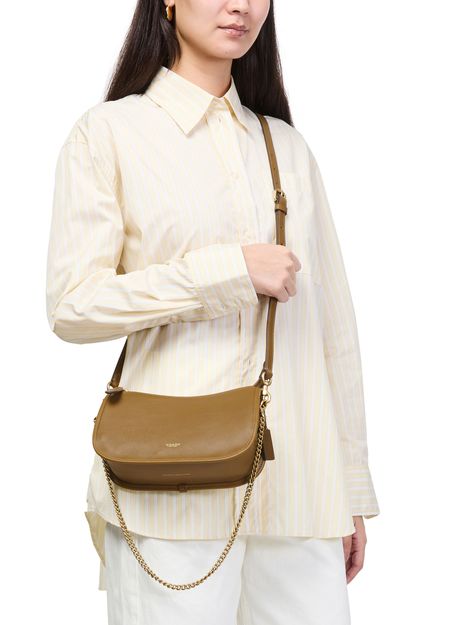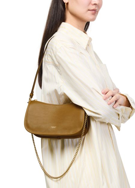 Reveal Coach's Waverly shoulder bag, crafted from smooth leather with a refined gold finish. The adjustable chain strap and single handle offer versatile styling, while the embossed Coach logo and visible stitching highlight meticulous craftsmanship. A zipper closure ensures your essentials stay secure in this modern accessory.