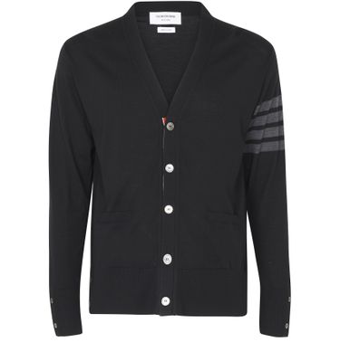 This cardigan in fine merino wool brings extra warmth to your shoulders, and can perfectly finish off a vintage and sophisticated look. This creation for men adds recognisable features like the signature of the Thom Browne fashion house. A fine tricoloured strip decorates the buttonhole of this gilet cardigan, while a discreetly placed badge blends into the classic look.