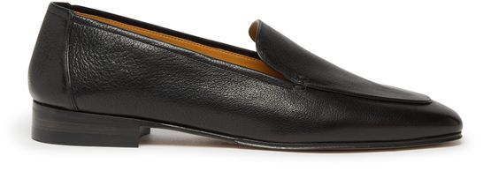 The Row Adam loafers are a stylish and sophisticated addition to any wardrobe. Made from grained leather, these loafers feature a rounded square toe and a very thin sole with a flat heel. The logo-printed insole adds a touch of luxury to these classic shoes.