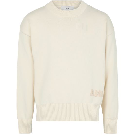Ami's Ami's crewneck sweater showcases a stylish front logo and an appliquéd logo that elevate its appeal. With long-sleeved comfort and a classic crew neck, this regular length sweater features cuffed sleeves for a refined finish. Perfect for layering or wearing solo, it effortlessly combines casual elegance with everyday wear.