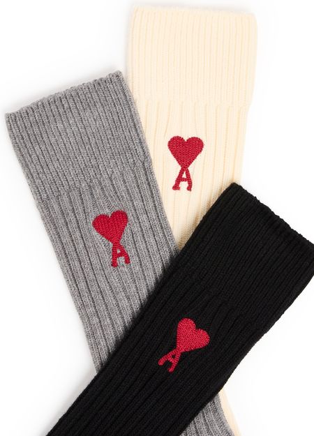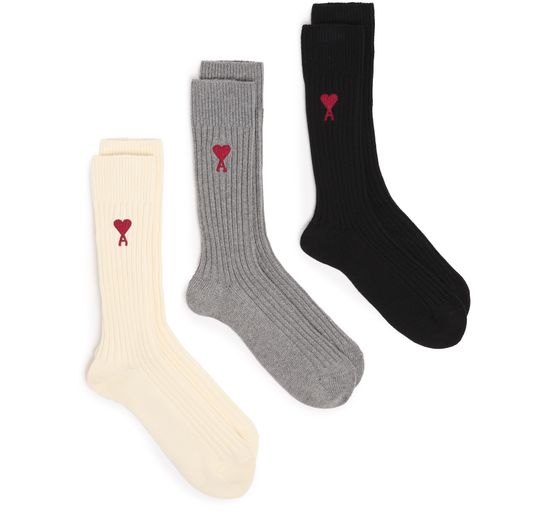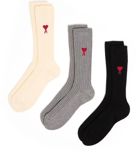 Ami de Cœur three pack socks are crafted from warm fabric, providing comfort during the cold season. These socks boast a very soft and gentle texture that feels delightful to the touch. They feature an embroidered logo, adding a subtle and stylish detail. With the logo placed discreetly on the front, these socks offer a perfect blend of functionality and sophistication.