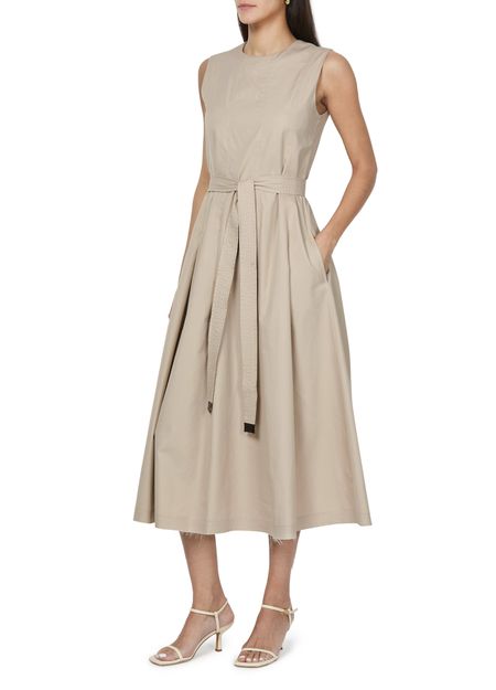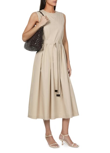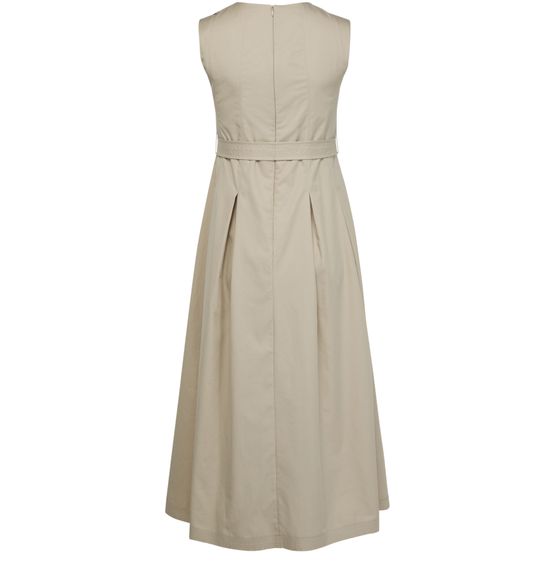 • Description : concealed back zipper closure, detachable belt made from the same fabric, visible stitching, midi dress, crew neck, sleeveless, flared dress, belted waist.