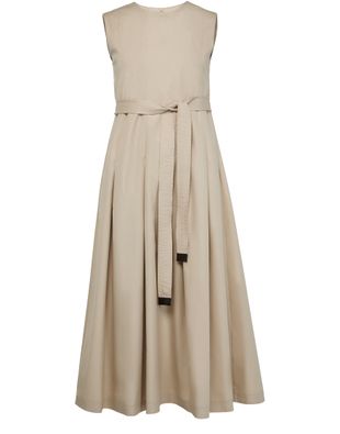 S Max Mara's Amina midi dress showcases a timeless elegance with its crew neck and sleeveless design. A concealed back zipper closure ensures a seamless fit, while the detachable belt made from the same fabric accentuates the belted waist. Flared with visible stitching, this dress is perfect for any occasion.