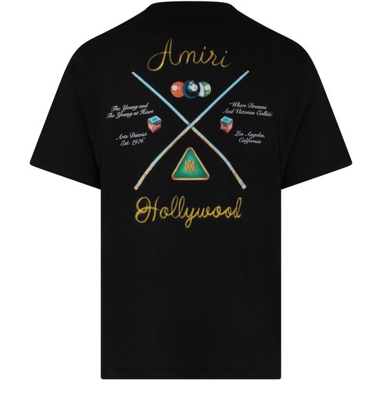 Amiri's Pool Cue t-shirt showcases a stylish crew neck and short-sleeved design, perfect for casual outings. With an embroidered chest logo and a printed logo at the back, it exudes modern flair. Visible stitching adds a touch of detail, making this piece a must-have for any fashion enthusiast.