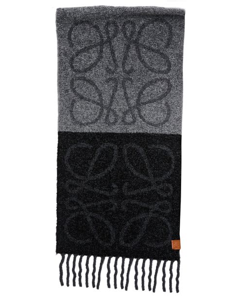 Reveal Loewe's Anagram scarf in alpaca and wool, a stylish accessory featuring fringed edges and an all-over logo. Perfect for elevating any ensemble with its contemporary design.