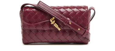 Introducing Bottega Veneta's Andiamo clutch, a masterpiece of modern elegance. This mini bag boasts a flap closure and visible topstitching, enhanced by a gold finish and printed logo. With its adjustable strap and zippered interior pocket, it seamlessly transitions from day to night.