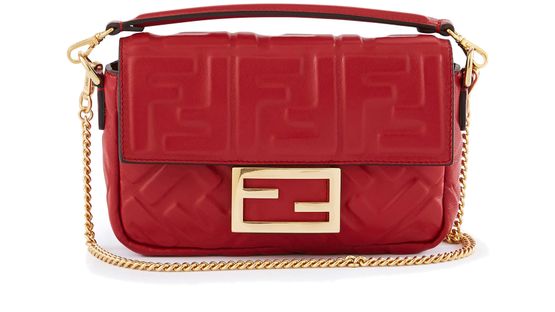 A tangle of the famous FF logo adds style to this small 1974 baguette bag. A timeless design from Fendi that will be loved by stylish modern women.