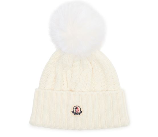Introducing Moncler's logo beanie, a modern accessory featuring a round crown and turn-up brim. The visible stitching and logo at the front add a distinctive touch, making it a perfect blend of style and functionality.