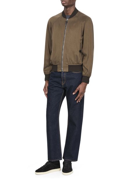 Tom Ford Distribution's Bomber showcases a short, long-sleeved silhouette with a high neck for a modern edge. Its practical zipper closure ensures effortless dressing, while side welt pockets add functionality. This bomber is perfect for those seeking a blend of style and comfort, making a statement in any setting.