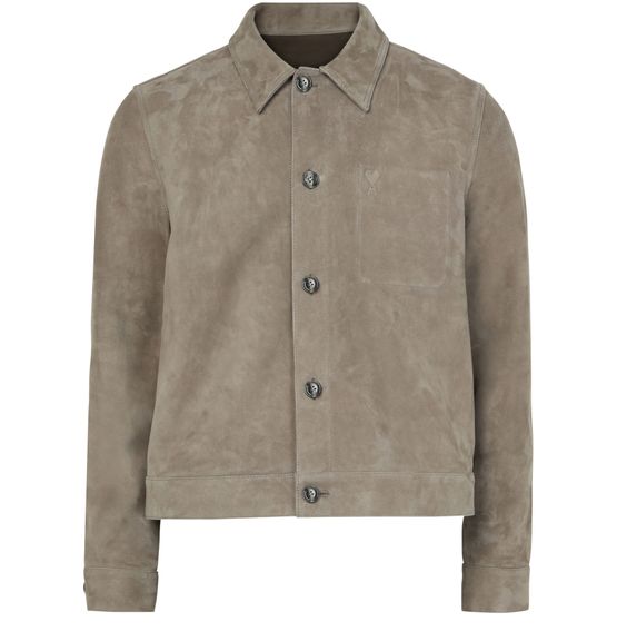 Ami's Buttoned jacket showcases a short, long-sleeved silhouette with a front buttoned closure for effortless style. Featuring an appliquéd logo and convenient patch pockets, including a breast pocket, this casual jacket effortlessly combines functionality and chic design, making it a versatile addition to any wardrobe.
