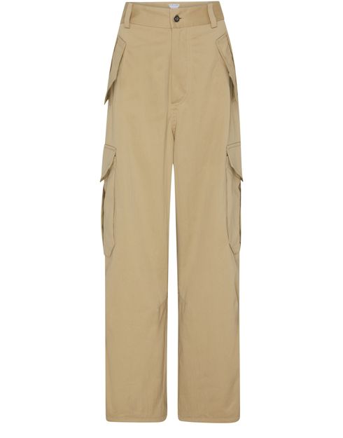 Bottega Veneta's Cargo pants offer a contemporary twist on classic style. With ankle length and a straight cut, they feature a buttoned and concealed zipper closure for a sleek finish. Side pockets provide practicality, while the belt loops add versatility. The logo at the back label subtly showcases the brand's elegance.