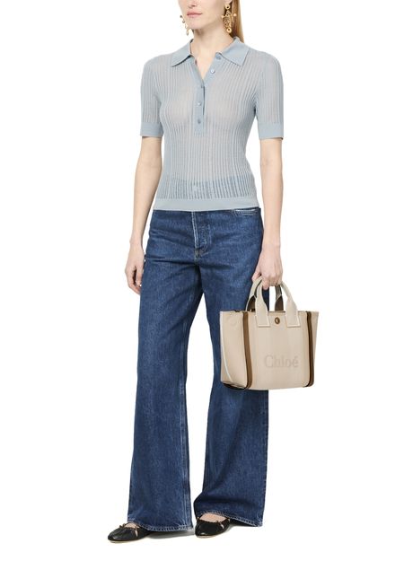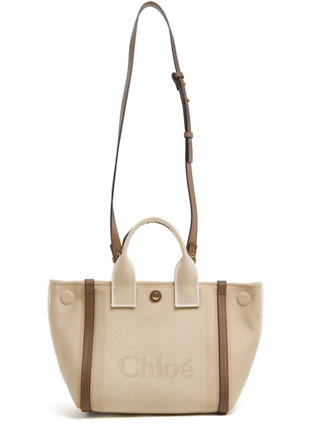 Chloé's Carry handbag captivates with its magnetic closure and single compartment, perfect for everyday essentials. Featuring double handles and a front logo, it combines style and functionality. Visible topstitching adds elegance, while the adjustable strap allows for versatile wear, whether hand carried or worn on the shoulder as a chic tote.