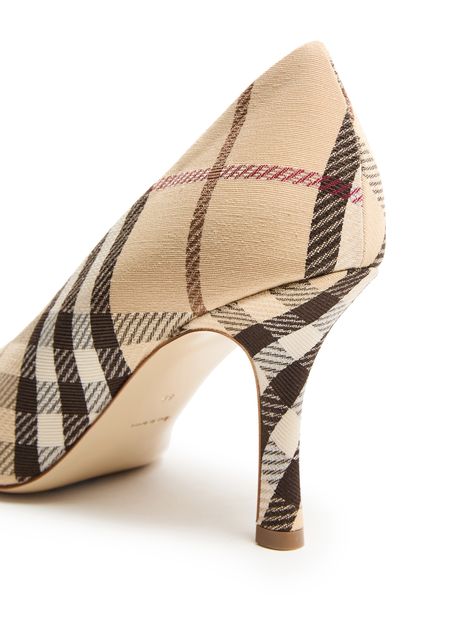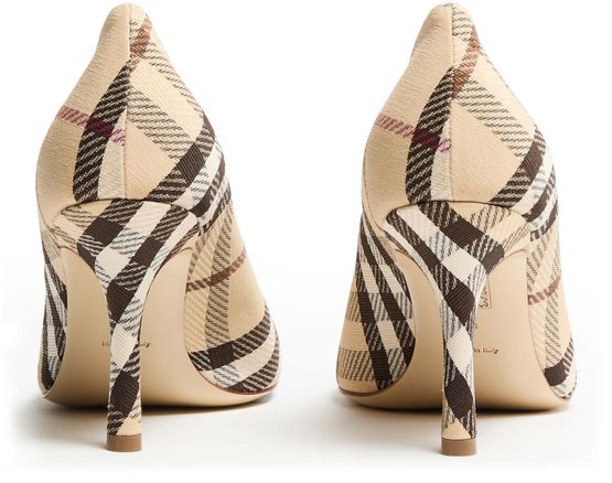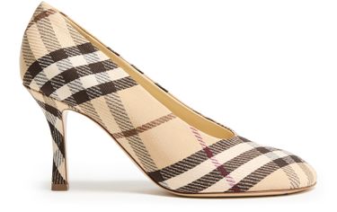 Burberry's Check Baby pumps showcase exquisite craftsmanship with visible stitching that highlights their elegance. Featuring a high stiletto heel and a round toe design, these closed pumps effortlessly elevate any outfit. Perfect for special occasions, they blend sophistication and style, making every step a statement of confidence and grace.