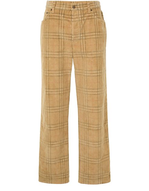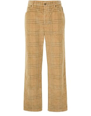 Reveal Burberry's Check cotton pants, a perfect blend of style and comfort. These ankle-length casual pants feature a buttoned zipper closure, two front pockets, and a back patch pocket. The visible stitching and back leather logo add a touch of sophistication, making them ideal for any wardrobe.