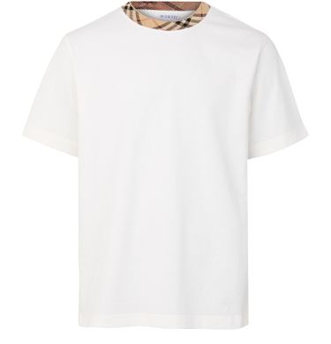 Unveil Burberry's check cotton t-shirt, crafted with the iconic Burberry Check pattern. This loose-fit top features a classic crew neck and short sleeves, offering a relaxed yet stylish silhouette. Perfect for layering or wearing alone, it seamlessly blends comfort with timeless elegance.