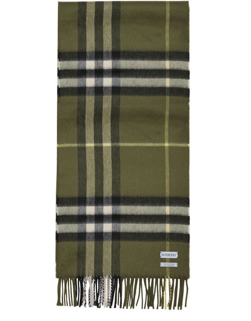 Unveil Burberry's checked cashmere scarf, expertly crafted with fringed edges and a printed logo. The timeless Burberry Check pattern adds a touch of sophistication, making it a must-have accessory for any wardrobe.