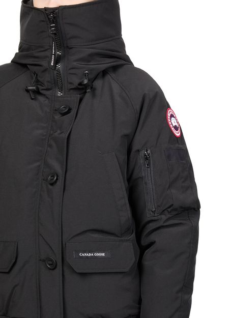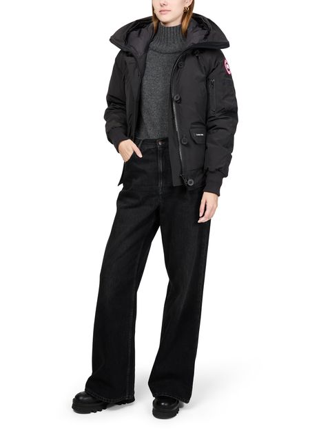 Discover Canada Goose's Chilliwack fleece aviator jacket, crafted for warmth with its padded texture and cozy hood. This short, long-sleeved piece features a concealed zipper closure and practical side pockets, making it a stylish yet functional addition to any wardrobe.
