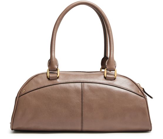 Reveal Chloé's bowling shoulder bag, crafted from smooth leather with double handles for versatile carrying. Gold-tone charms and a front logo in gold letters add refined detail, while visible stitching and a zippered interior pocket ensure both style and practicality with every use.