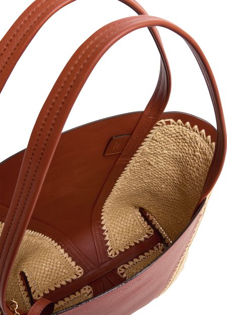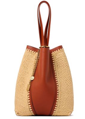 Reveal Chloé's spin bucket bag, where the signature "Spin" fastener and double handles meet refined gold finish accents. Visible topstitching and a front logo add a modern edge, while the tone-on-tone lining ensures a seamless, sophisticated interior for everyday essentials.