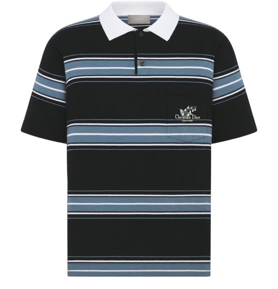 Discover Christian Dior Couture's Lily of the Valley Polo Shirt, featuring intricate embroidery on the chest pocket and a contrasting polo collar, showcasing Dior's timeless elegance.