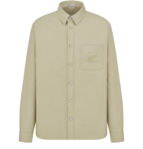 Reveal Dior's Christian Dior Couture Lily of the Valley Shirt, showcasing exquisite Lily of the Valley embroidery on the chest pocket and a refined button closure. This shirt seamlessly combines elegance and style, making it a staple for any modern wardrobe.