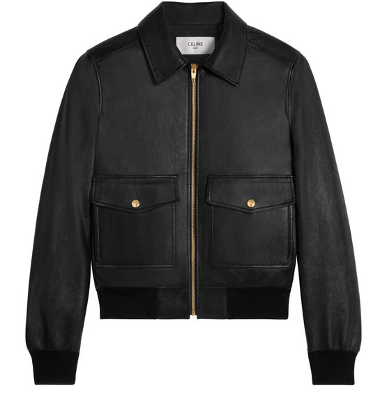 Celine's Classic aviator blouson jacket in soft lambskin embodies effortless elegance and timeless style. Its luxurious texture and refined silhouette make it a versatile staple for any wardrobe. Perfect for both casual outings and sophisticated events, this jacket elevates your look, offering a blend of comfort and high-fashion appeal.