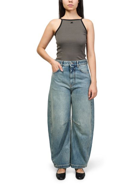 Reveal Courreges's contrast tank top, defined by its rectangular neckline and distinctive front logo. The sleek silhouette and modern cut make it a standout piece, perfect for layering or wearing solo. Pair this versatile top with tailored pants or denim for a refined, contemporary look.