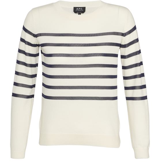 The Cordelia merino wool sweatshirt with a "marinière" effect is a must-have from A.P.C. this winter. Wear with denim and trainers.