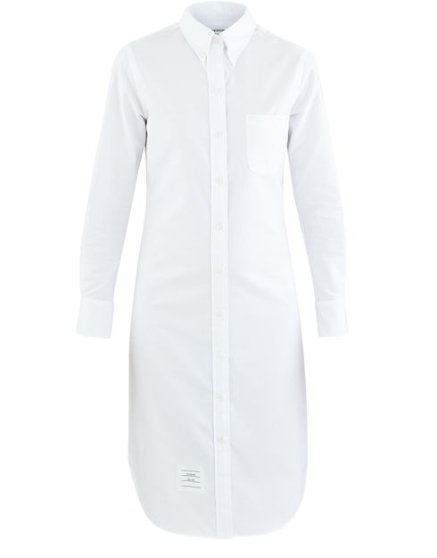 Thom Browne's elegant and distinguished cotton shirt dress is cut long with a button down collar for a modern bohemian style.
