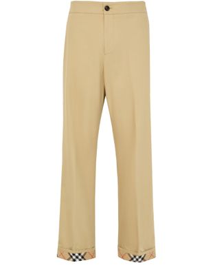 Reveal Burberry's cotton suit pants, a perfect blend of sophistication and comfort. With an ankle-length design and elasticated waist, these casual pants feature the iconic Burberry Check pattern. The buttoned zipper closure adds a sleek touch, while the back patch pocket offers practicality. Ideal for versatile styling.