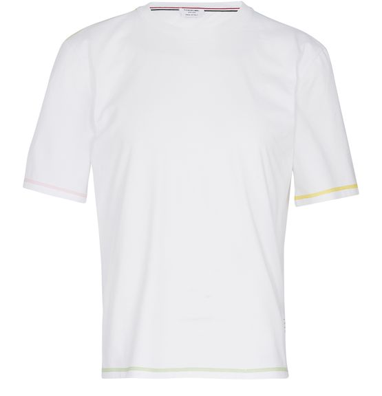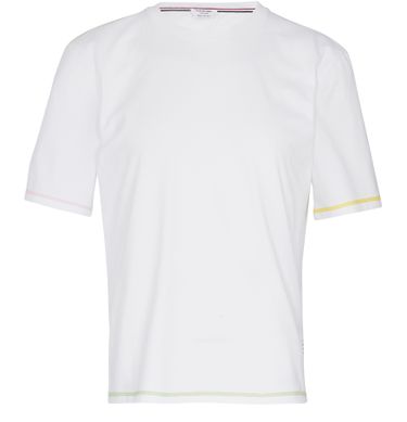 This cotton t-shirt is a design from Thom Browne. Three fine coloured stripes bring discreet touches of dynamism to this classic piece with a refined design.