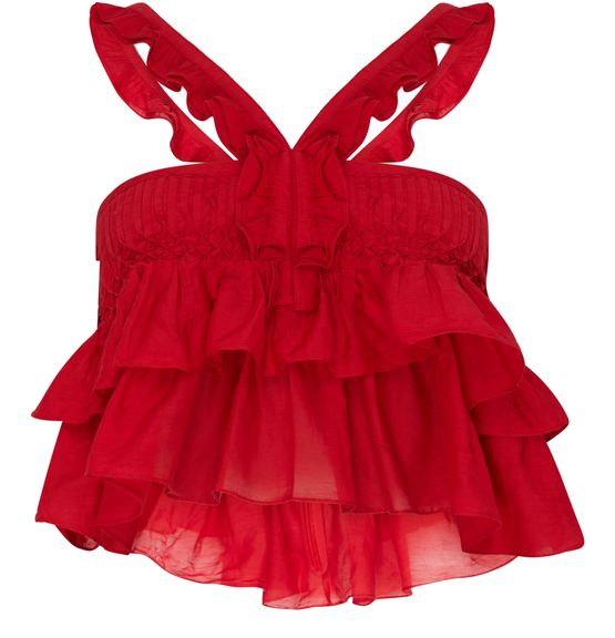 Etoile Isabel Marant's Daliana top showcases a sleek sleeveless design with a flattering v-neck. Its crop length highlights the waist, while ruffle details add a playful touch. The back zipper closure ensures a snug fit, and visible stitching enhances its artisanal charm, making it a perfect choice for effortless elegance.