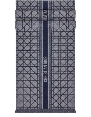 Discover Dior's cannage scarf, featuring contrasting jacquard bands adorned with the iconic 'CHRISTIAN DIOR' signature. This elegant piece is completed with fringed edges, adding a sophisticated touch to your style.