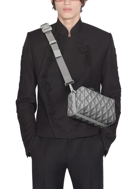 Description : Palladium-finish brass 'DIOR' signature on the front, interior embossed with 'DIOR' signature, two-way zip closure with magnetic leather flap, adjustable and removable 'CHRISTIAN DIOR' nylon jacquard shoulder, aluminum buckle with 'Christian Dior' signature and 'CD' initials, dust bag included, made in Italy.