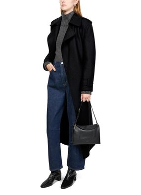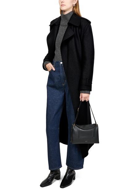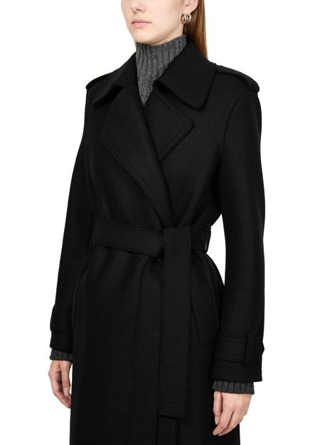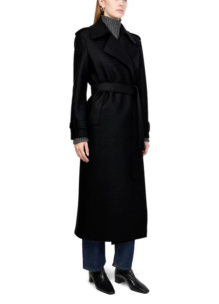 Indulge in Harris Wharf London's double-stitched long trench in pressed wool. This elegant piece features a notched collar, long sleeves, and topstitched edges. Designed with practicality in mind, it includes side pockets and a double-breasted front, ensuring a sophisticated look for any occasion.