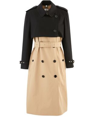 The Deighton trench coat carries the Burberry signature. Buttoned straps on the shoulder, a buckle and tie belt and large buttons complete this two-tone piece.