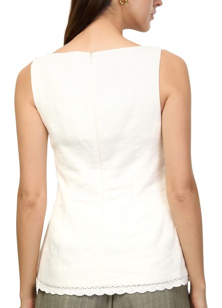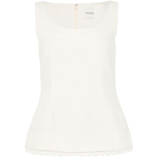 Reveal Posse's Matilda top, defined by its rectangular neckline and sleek back zipper closure. The refined silhouette offers a modern edge, making it a versatile piece for both tailored trousers and casual denim. Its minimalist design ensures effortless sophistication for any occasion.
