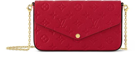 The Félicie Pochette is crafted from Monogram Empreinte leather, embossed with Louis Vuitton's signature Monogram pattern. Designed to adapt to modern lifestyles, this envelope-style pouch contains a spacious compartment with two removable pockets: one zipped, one with card slots. It can also be carried in different ways thanks to a removable chain.