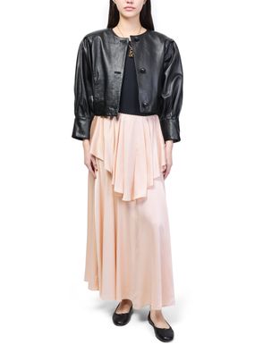 Reveal Chloe's pleated maxi skirt, where flowing pleated details and elegant draped accents create a refined silhouette. Ruffle touches add movement, while the maxi length offers versatile styling from day to evening. This piece seamlessly blends sophistication and comfort for a standout look.