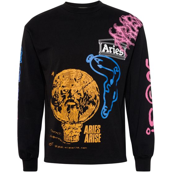 The Aries label is inspired by urban codes with the French Monster t-shirt. The colourful prints are like graffiti on this black long-sleeved t-shirt.