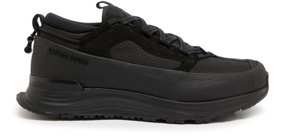 Canada Goose's Glacier Trail sneaker showcases a sleek design with a round toe and a thick outer sole for durability. Featuring a logo on the side and an embossed logo on the tongue, it combines style with functionality. Visible stitching adds a refined touch, while the elevated platform enhances comfort.