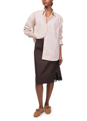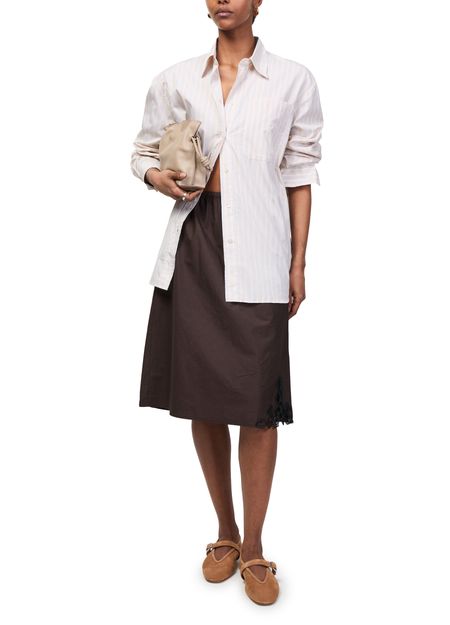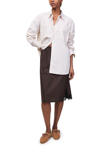 Reveal Soeur's Houna midi skirt, a refined A-line silhouette crafted with delicate lace details and an elasticated waist for effortless comfort. The knee-length design offers versatile styling, seamlessly transitioning from day to evening while ensuring a polished, modern look for any occasion.