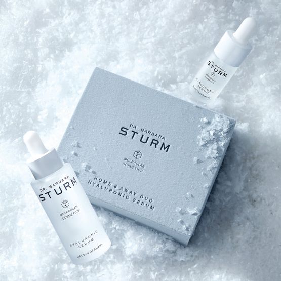 A full-size bottle of Dr. Barbara Sturm’s award-winning Hyaluronic serum, along with a convenient travel size for when you’re on-the-go.