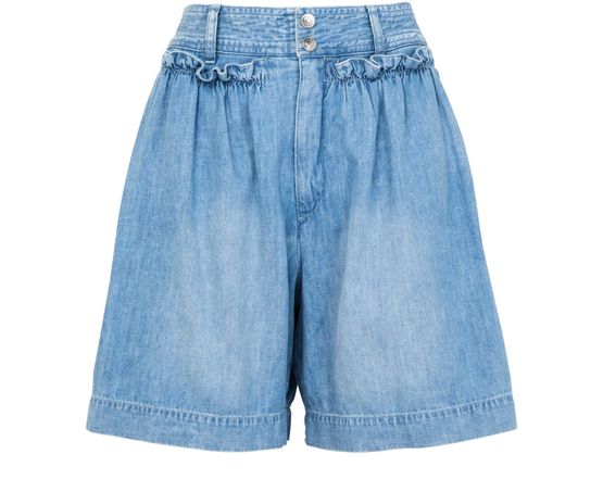 Isabel Marant's Ingrid denim shorts showcase a high-waisted fit with a belted waist for a flattering silhouette. Featuring a buttoned and concealed zipper closure, these shorts highlight visible stitching and back darts for added style. The back patch pocket adds functionality, while the short length ensures a chic summer look.