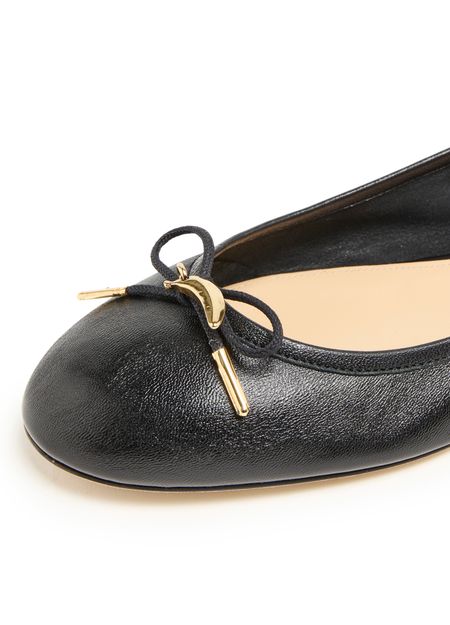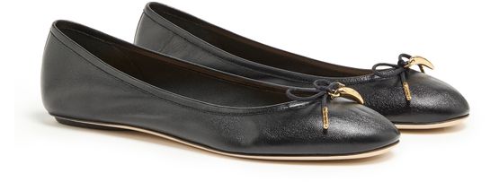 • Description : gold finish, logo in gold letters, visible stitching, ballet pumps, contrasting sole, logo-printed insole, round toe, closed.