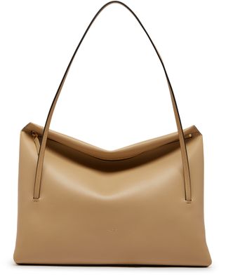 Wandler's Jo medium tote bag is very soft to the touch, making it a luxurious accessory. With two handles for versatile carrying, it features visible stitching that adds character. The zipper closure secures your belongings, while the front logo, elegantly displayed in gold letters, enhances its sophisticated charm.