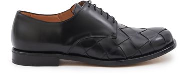 Opt for discreet elegance in these leather shoes from Bottega Veneta. The restrained and timeless design is enhanced by the Maxi Intreccio detail on the uppers. Horizontal lacing and shine make them modern and stylish. For maximum comfort they have a square heel.